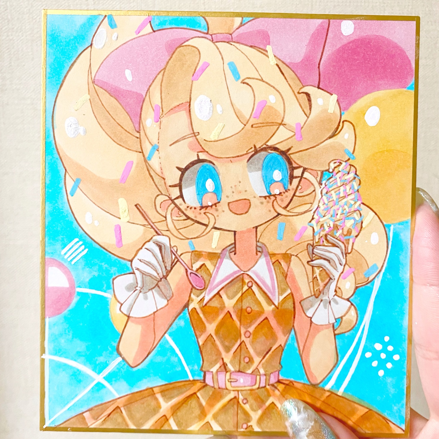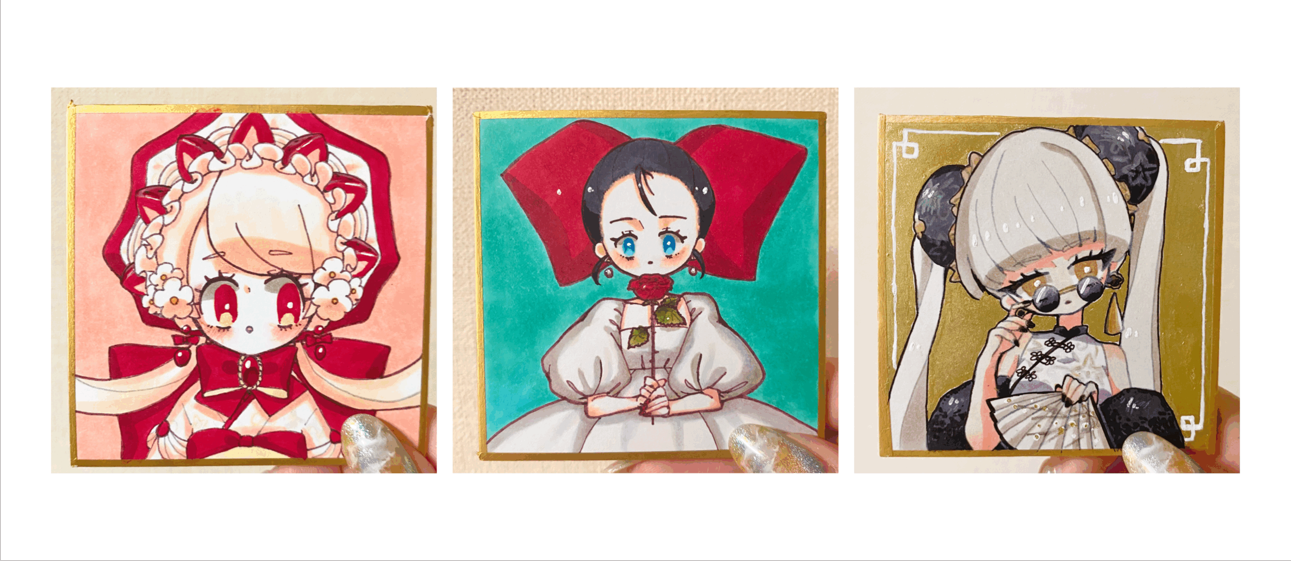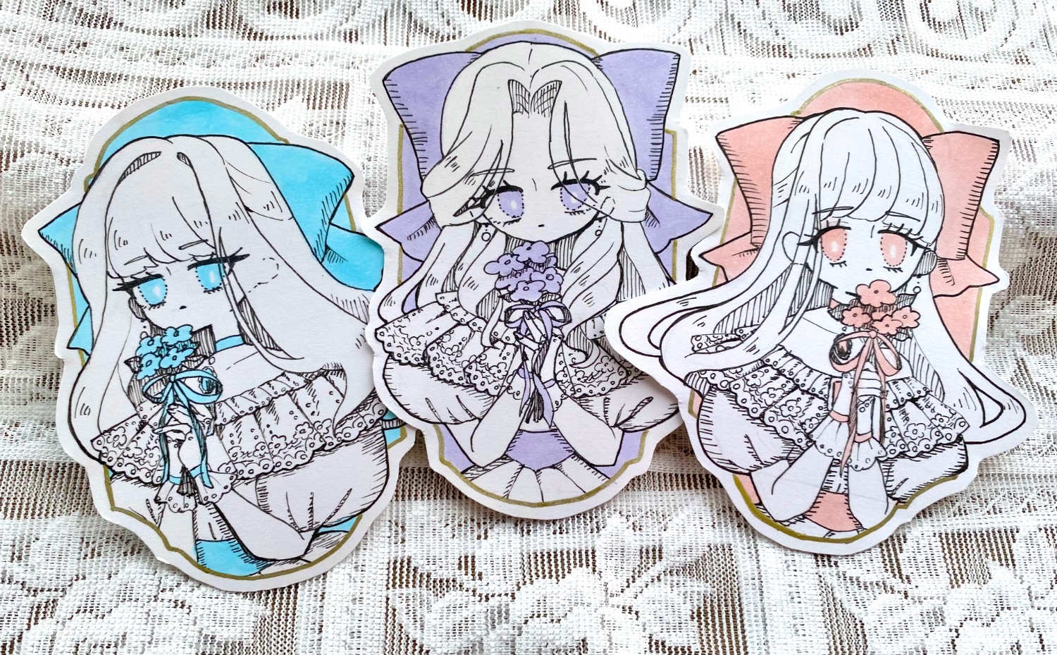 今回はダイカットな原画を用意してみました。ペン画&少しコピックで色塗り。個性的でかわいいです。こちらは1枚2,000円で豆色紙と同じお値段です。