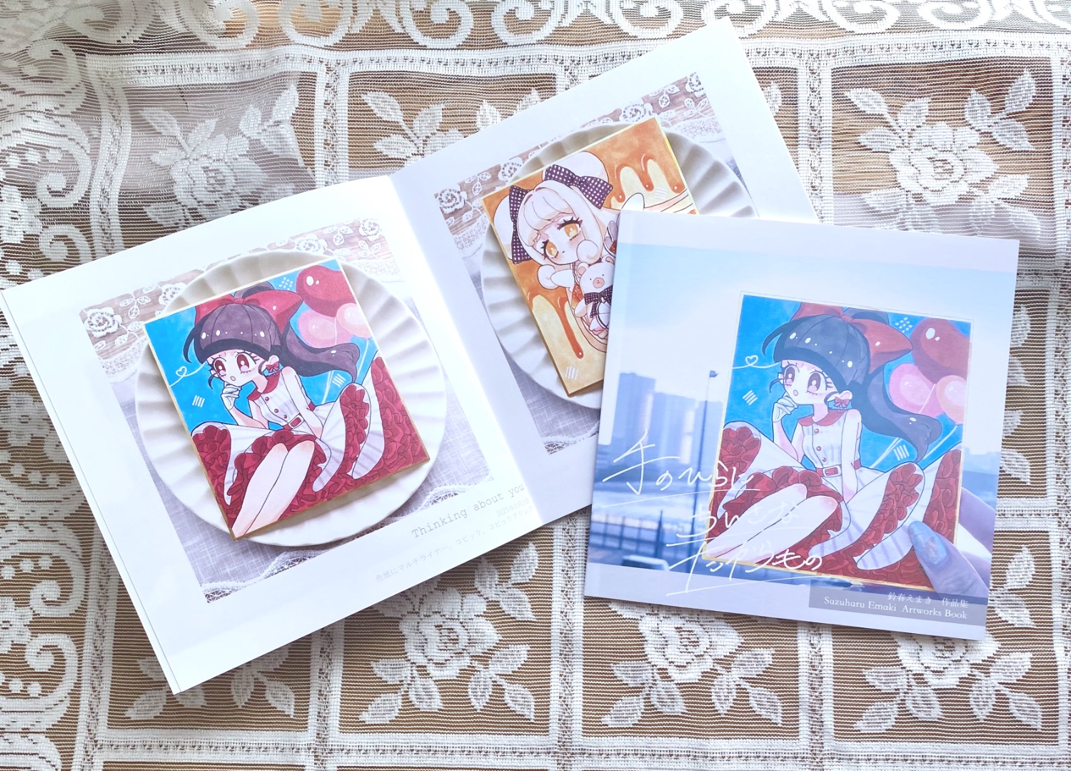 タイトルの「手のひらにちいさなたからもの」は私がアナログ作品を作る上で考えていることで、もう本当にそのままの意味なのですが、手元に置いて気軽に楽しめるたからものを作るようなイメージで制作をしています。雑貨屋で見かけた名も知らない綺麗な石を光に当ててきらきら楽しむような…そんな感じでこの本(や原画)も楽しんでいただければと思っています。1冊500円です。まさにワンコイン。